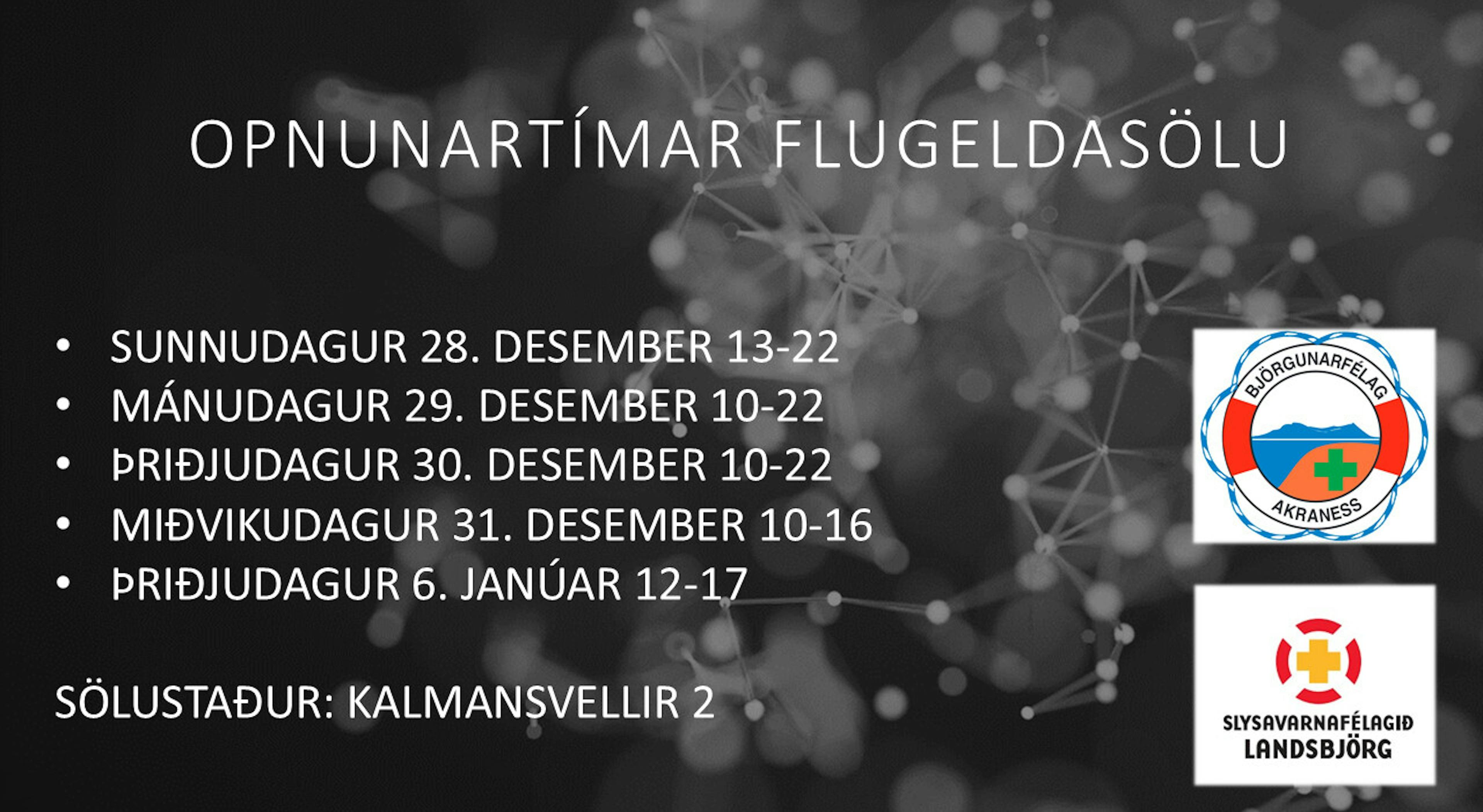 Eins og áður opnar flugeldasalan okkar Þann 28. desember. Sjá opnunartíma á auglýsingunni hér til hliðar.
