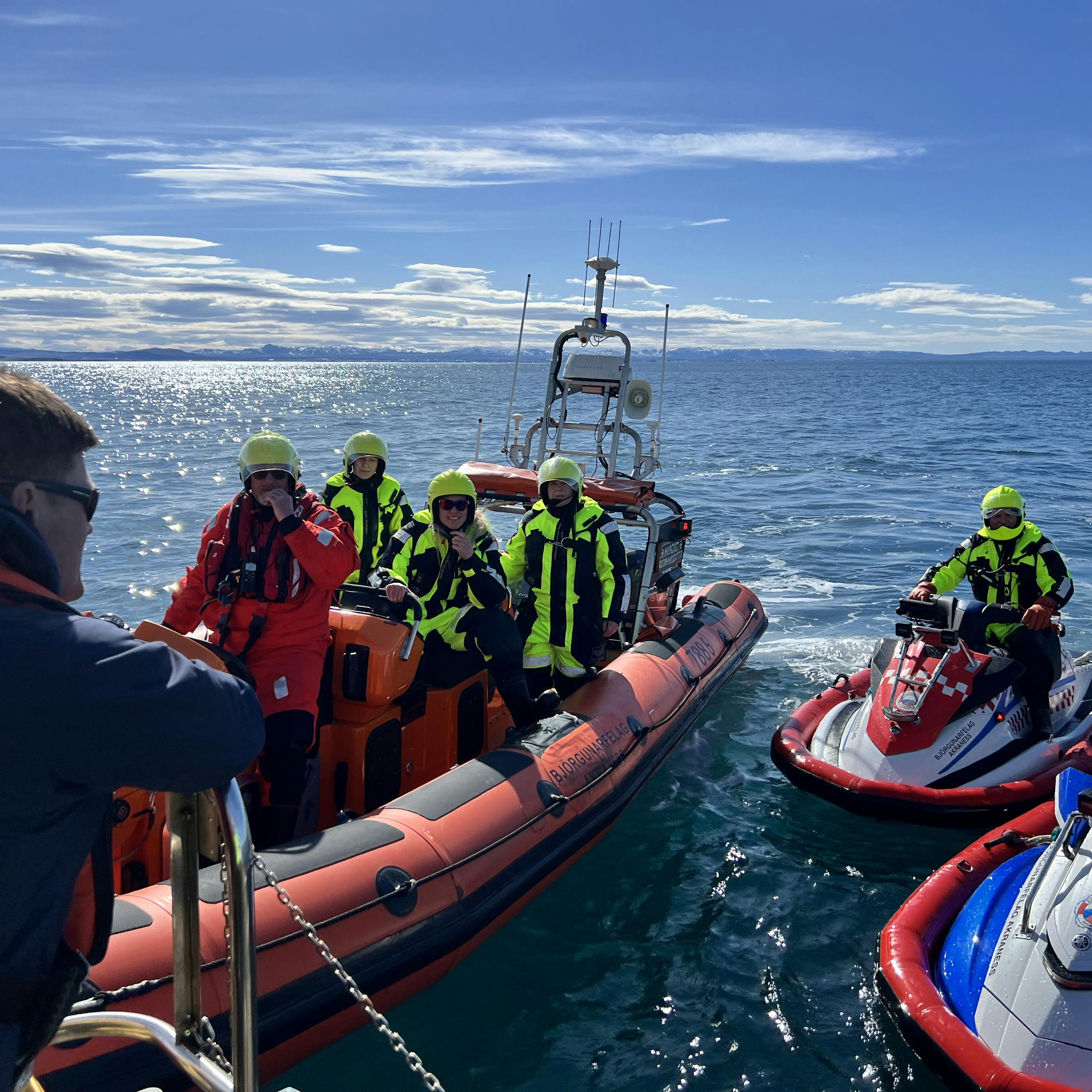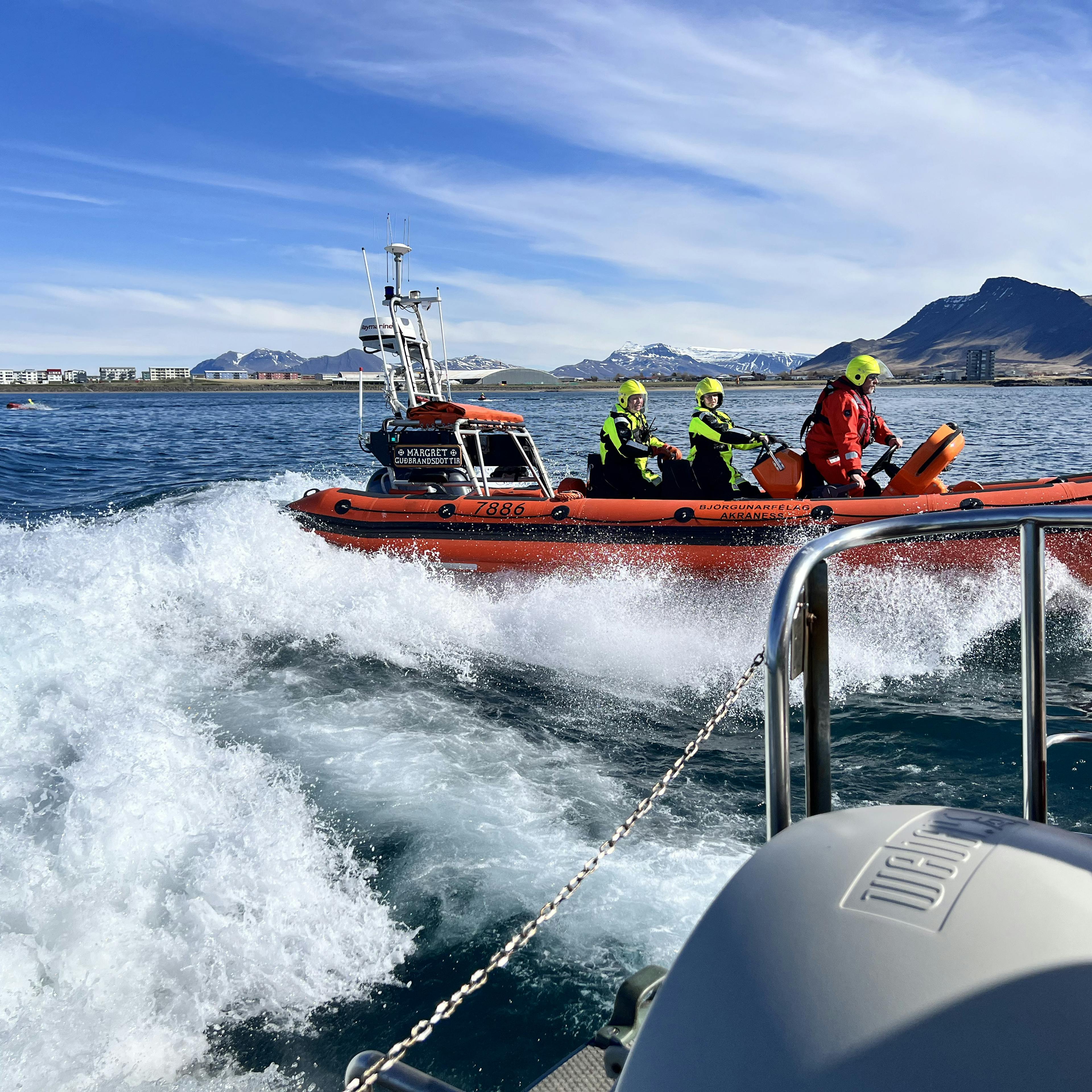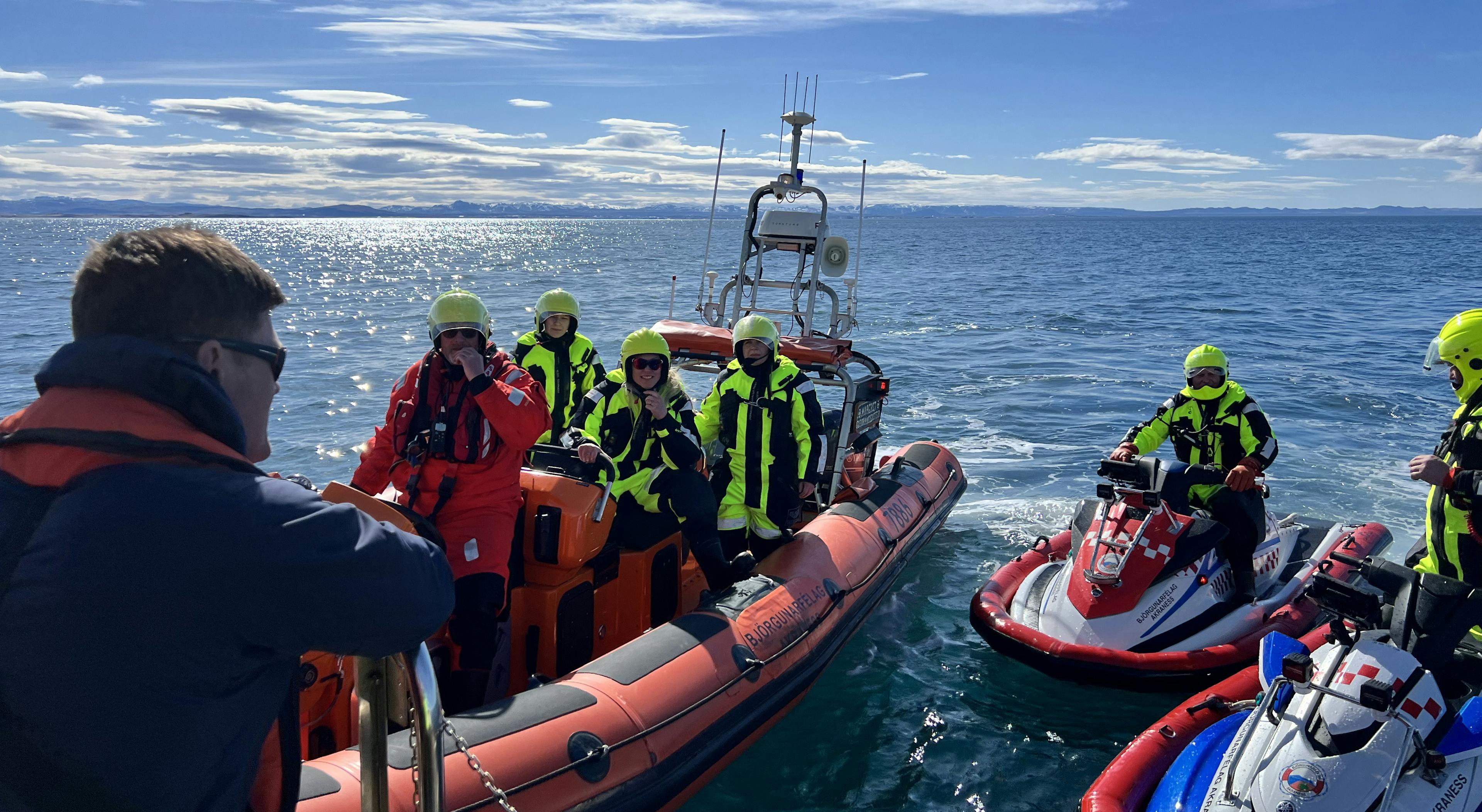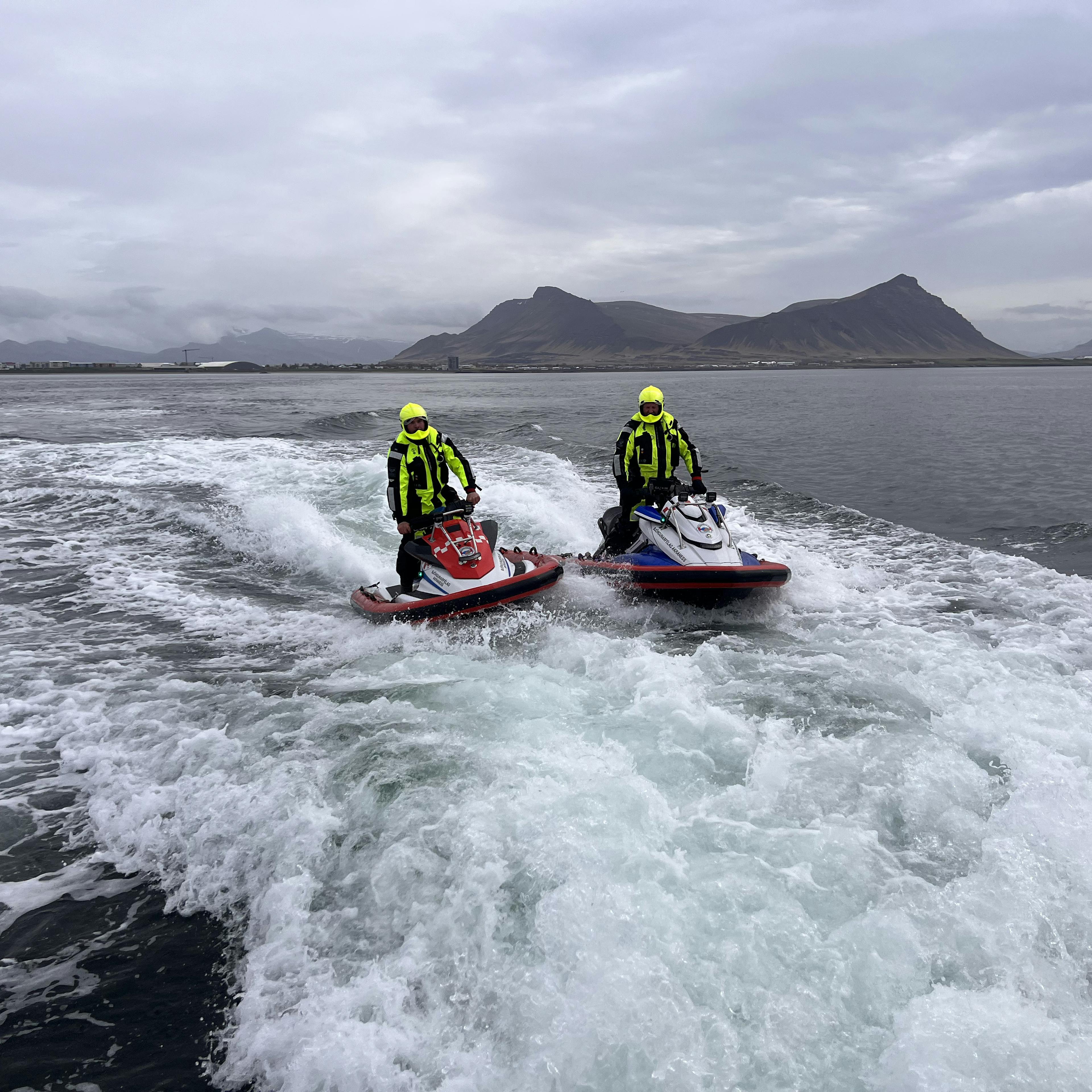 Safe Runner sjóskíði eru knúin áfram með jett drifi sem leyfir þeim að sigla á grunnsævi. Þau henta sérlega vel til að sigla á milli skerja og kletta. Eiga auðvelt með að lenda í óaðgengilegum fjörum. Nýtast vel til leitar við klettótta strandlengju. Þau eru útbúin með AIS tækjum sem tryggir að þau sjást vel aá radar.